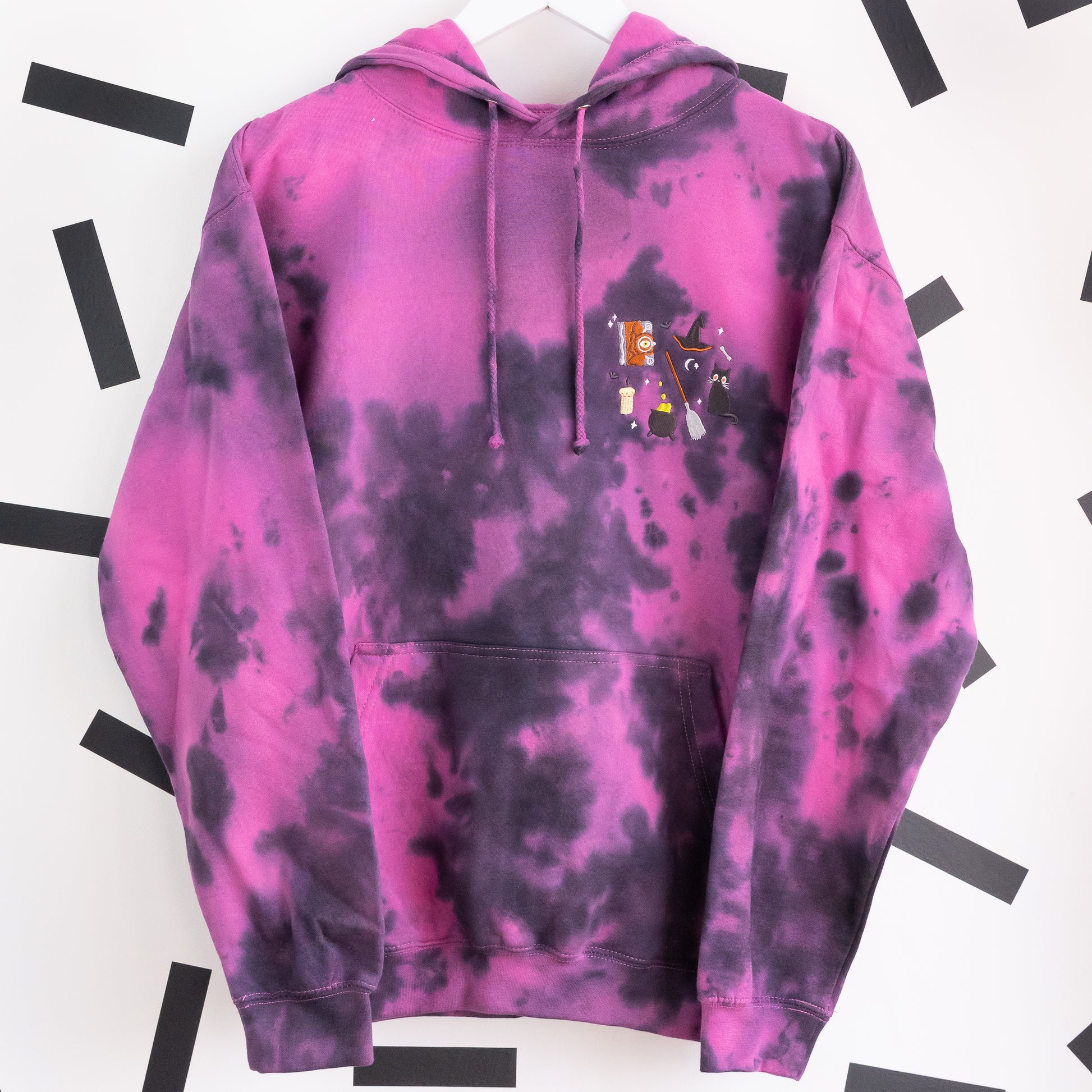 "Hocus Pocus" Embroidered Tie Dye Hoodie - Pinky Purple