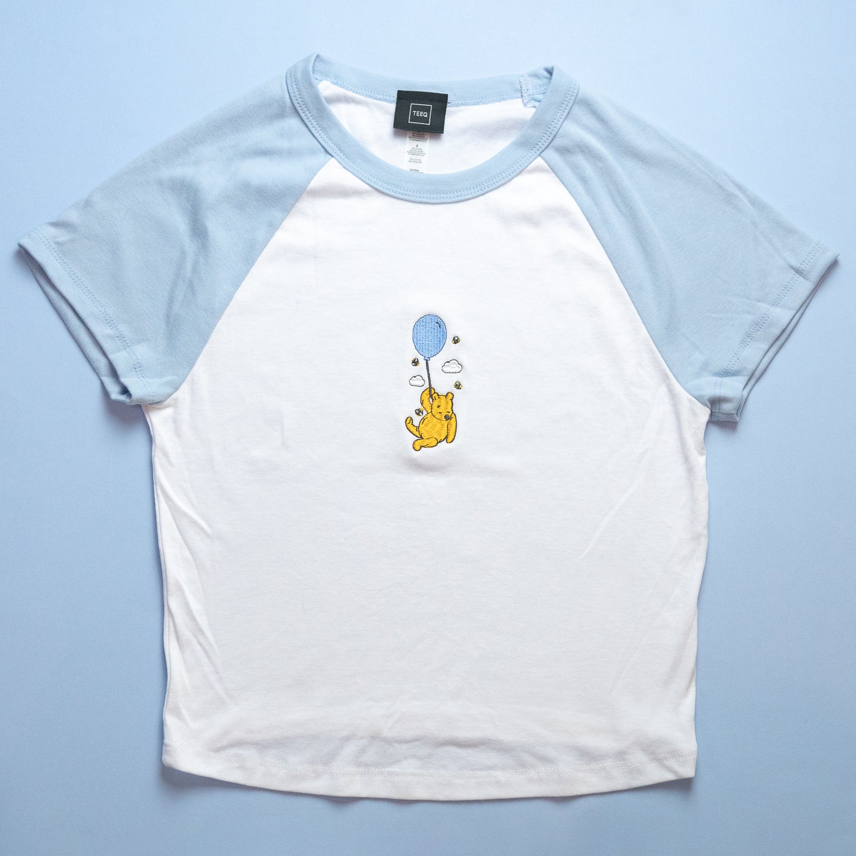This tee features our Winnie Balloon Embroidered Women's Ringer design — lightweight, easy to wear, and full of fun.